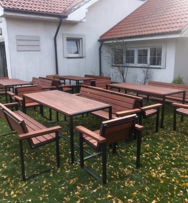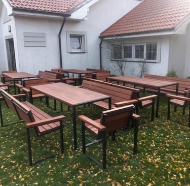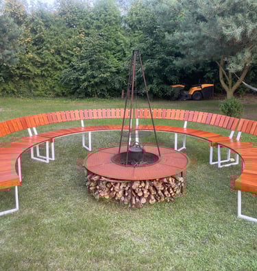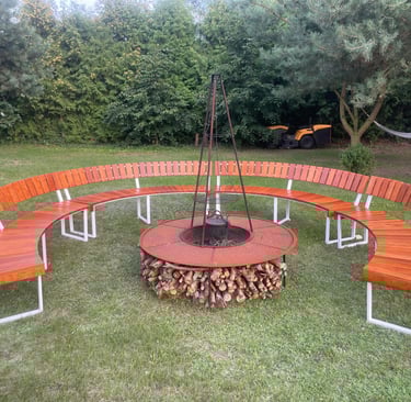 Specjalizujemy się w produkcji małej architektury ogrodowej, w tym ławek ogrodowych łukowych z oparciem lub bez, zestawów tarasowych, palenisk i drewutni, dostosowanych do potrzeb klienta. Każdy z produktów wyceniamy indywidulanie pod zapotrzebowanie wymiarowe. Świadczymy też usługi obróbki metali, podejmując nietypowe zlecenia. Stawiamy na jakość i zadowolenie klientów.